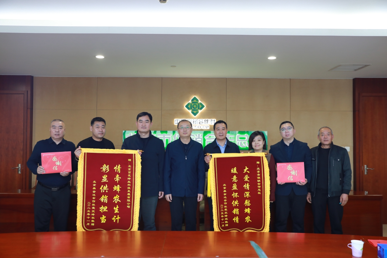 近日,密云奥金达养蜂合作社向市社、百花公司赠送锦旗,感谢今年夏天密云洪水灾害期间的捐款支持,市社领导曹立新参加。曹立新细致询问合作社当前的生产恢复细节及整体发展状况,对合作社及受灾蜂农表达了关切与慰问,强调:一是要持续深化百花蜂业公司与合作社的紧密协作,充分发挥各自在技术、市场、资源等方面的优势,实现“1+1>2”的合作效能;二是立足“十五五”发展新起点,着力在深耕产品、适度扩大规模上下功夫,提升产业链各环节的协同效率;三是把握蜂产品行业转型升级新机遇,创新经营模式,切实增强抗风险能力和市场竞争力。合作社理事长李定顺对市社及百花蜂业公司的捐款支持表示衷心感谢,向市社和百花蜂业公司分别赠送锦旗和感谢信。